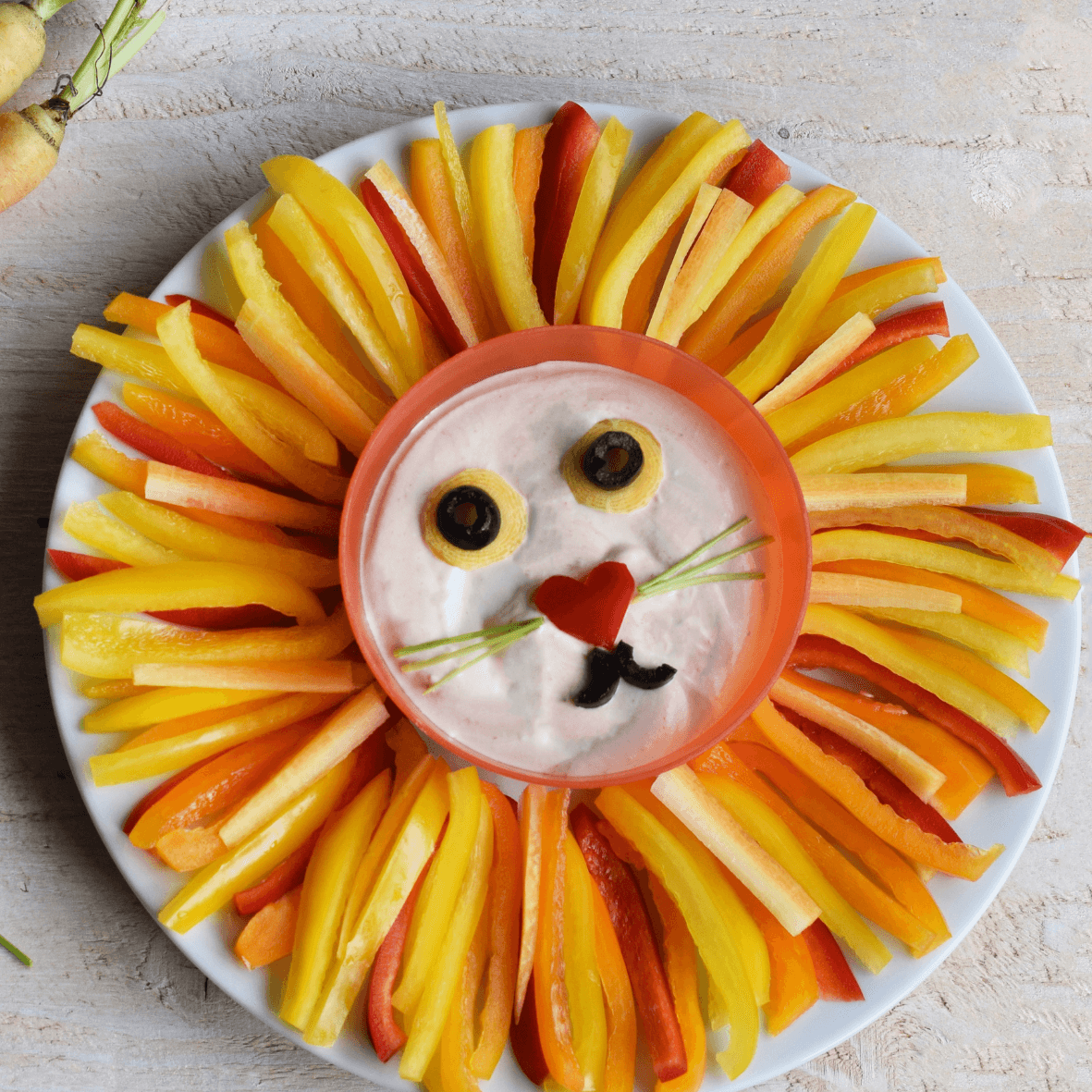Zoals bij iedere activiteit kan je de jongste kinderen ook helpen met hun woordenschat, door het benoemen van de kleuren, vormen en namen van de groente en fruit.