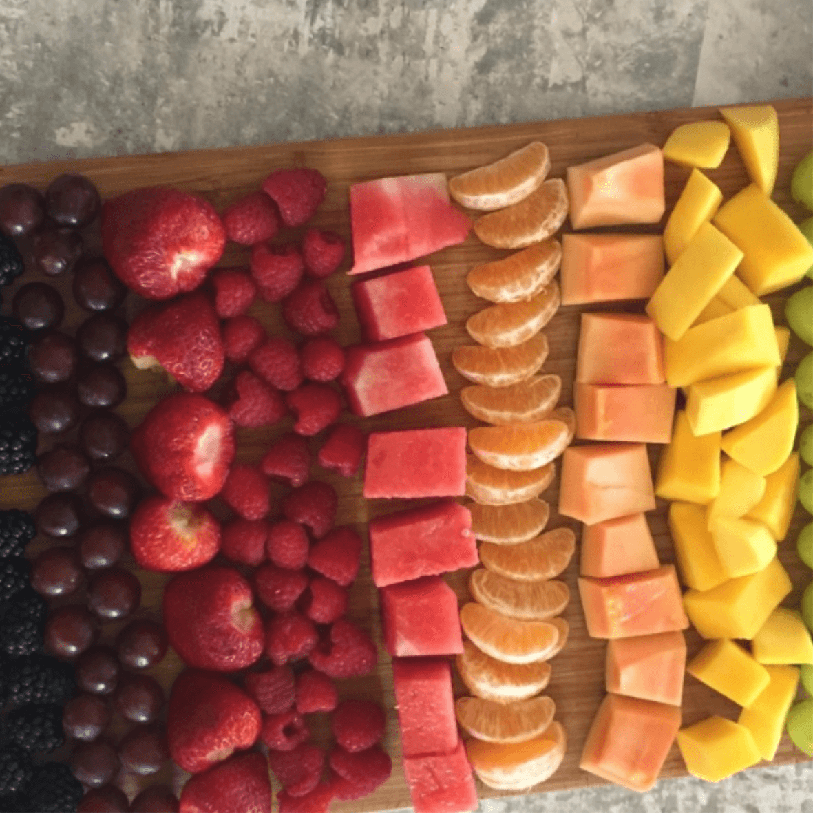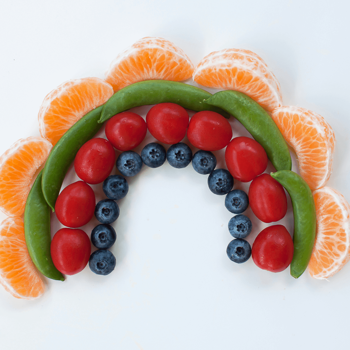 Groente en fruit zijn ideaal om voor een creatieve (en lekkere) activiteit. Juist doordat het zo kleurrijk is, zo kan je heel gemakkelijk met deze verschillende kleuren een regenboog maken. Kleurrijk hè?