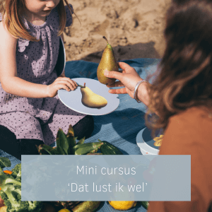 In de mini cursus ‘Dat lust ik wel’ ga jij aan de slag om je kind vanuit een positieve, leuke én effectieve manier om je kind groente (fruit of andere voedingsmiddelen) proeven en leren eten. Als pedagoog & (kinder)voedingsdeskundige geef ik je praktische tips en tools wat je wel kan zeggen en doen om je kind te enthousiasmeren te proeven en zo nieuwe voeding te leren eten.