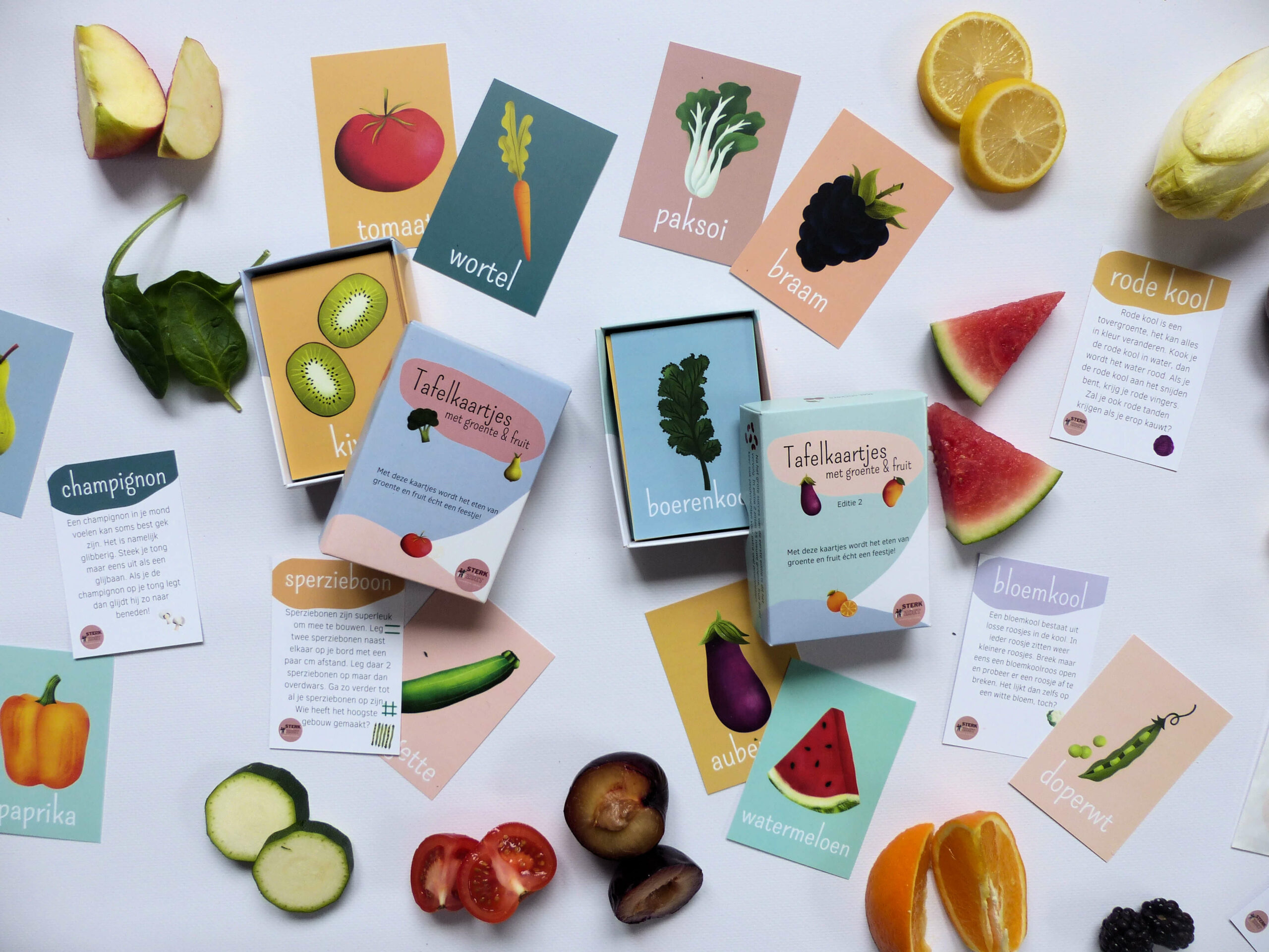 Alle 60 kaartjes zijn uniek én dragen bij om van groente en fruit eten een feestje te maken!