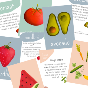 Het doel van de kaartjes is spelenderwijs meer leren over groente en fruit én gaan proeven!